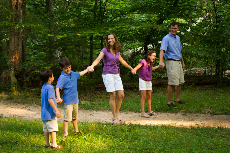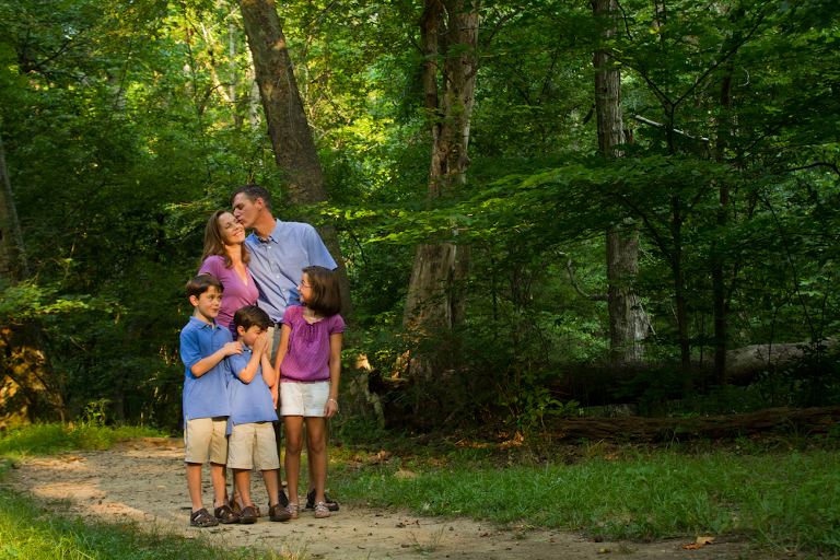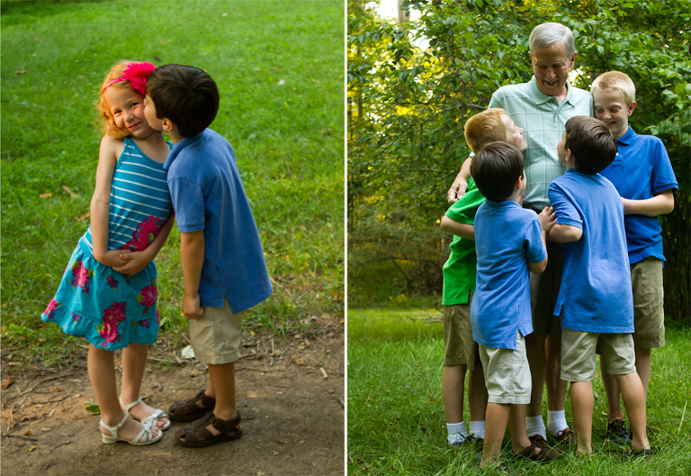 I LOVED photographing the Easterly family/extended family at the North Carolina Botanical Gardens! It wasn’t easy, but it was a blast. Whenever you get this many young kids together on a warm summer night someone’s going to get tired and someone’s going to get itchy and someone’s going to decide they are finished before their parents think they are. Nevertheless, the photos turned out beautiful (that’s what happens when you have beautiful light and a great family, remember?). I got to second-shoot this session with Courtney Potter Weddings, which was great, as always. It’s always interesting though second-shooting on a portrait session because it means no one is ever looking at you. In a portrait. Which is kinda weird, so I focused on capturing the little moments in an around the poses. I’m so happy with the way they all turned out! Especially this sweet moment between a little boy and his mom. Apparently he likes to kiss people though because in another of my favorite photos he’s giving his cousin an adorable kiss on the cheek.