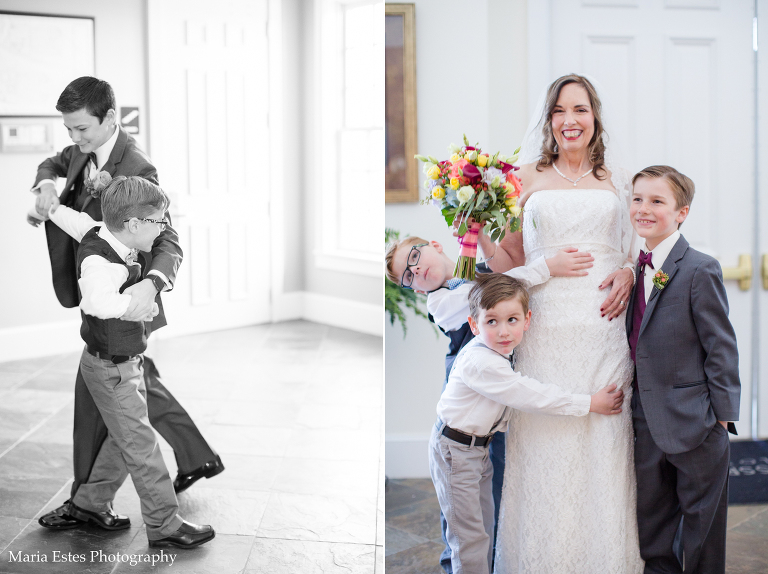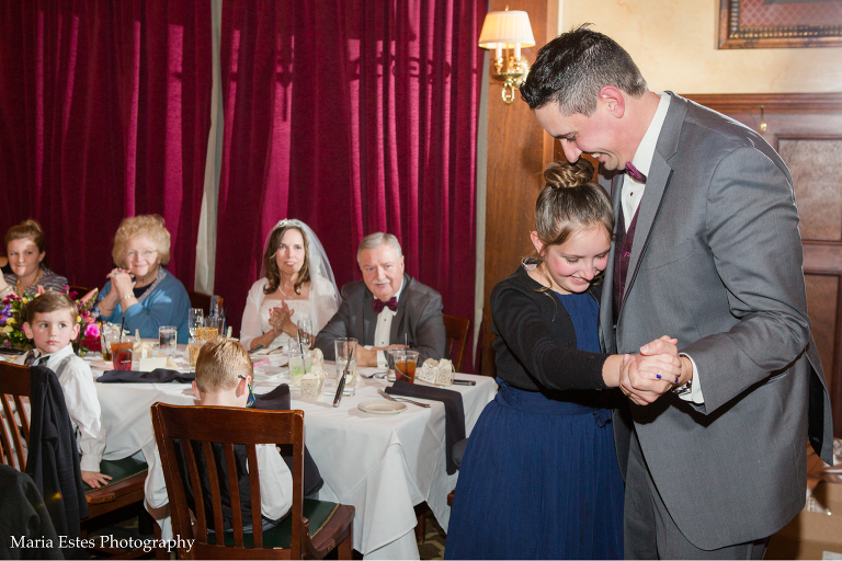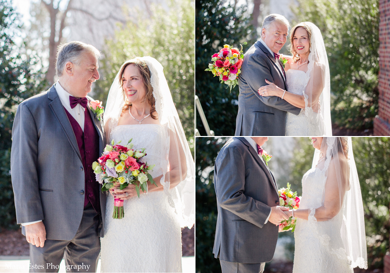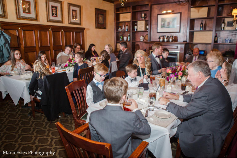 It was chilly on Saturday to say the least, but everyone did such a great job with the outdoor photos, including the kids, and I LOVE the in between photos of Tom and Eileen with their grandkids while we were all getting warm. After that we headed over to Vinnie’s Steakhouse in Raleigh for the reception. I’d never been there before, but their private room was perfect for the occasion. Congratulations Eileen and Tom, and I hope you have a fabulous time on your honeymoon!!!
