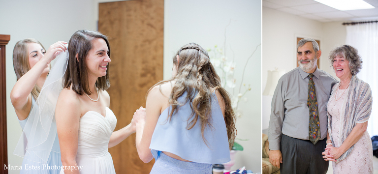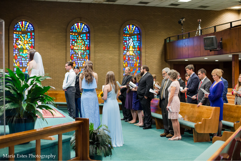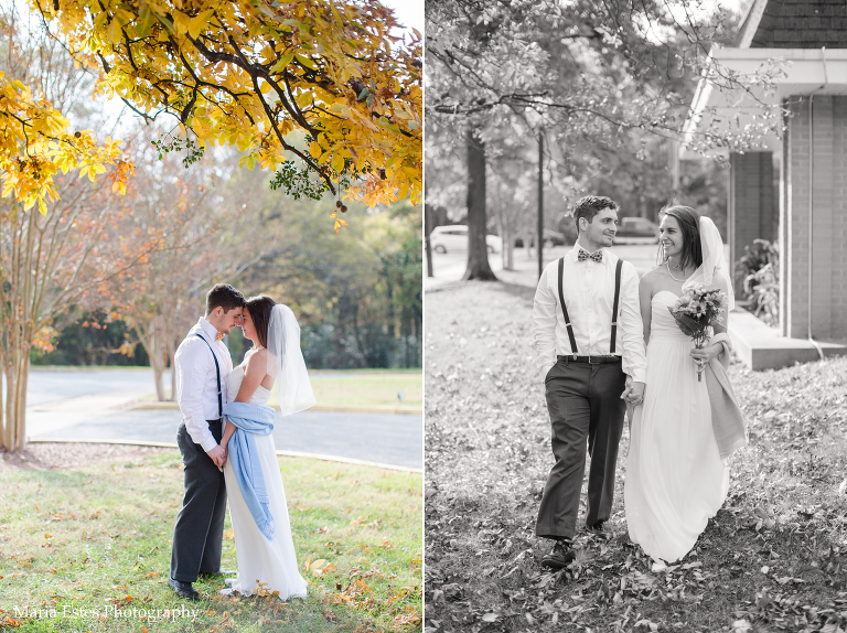 I loved being a part of Camille and Brandon’s intimate, family-centered wedding right before Thanksgiving. I say family-centered for a few reasons. First, they only had about 30 people in attendance, and it was mostly family. I love those kinds of weddings because it really seems like the bride and groom can spend real time with each person (I wouldn’t know…we probably had 300 people at our wedding!). And it somehow seems fitting since both families are growing to include someone new. Second, Camille chose the church very purposefully. They had the wedding at Eastway Church of God, where Camillle’s grandfather pastored for 40 years. The courtyard is dedicated to her grandmother, and it’s the church her mom grew up in. Her grandparents have since passed away, but by having the ceremony as that church, it really felt like they were still included. It really was special. And finally, I say family-centered because if it had been up to Camille, they definitely would have eloped. But Camille is very close to her dad, and her dad wanted to walk her down the aisle. And her mom wanted to have those getting ready photos. So they did the church wedding, and they did it in such a low-key, low-stress way that I *think* they’re glad they did 😉