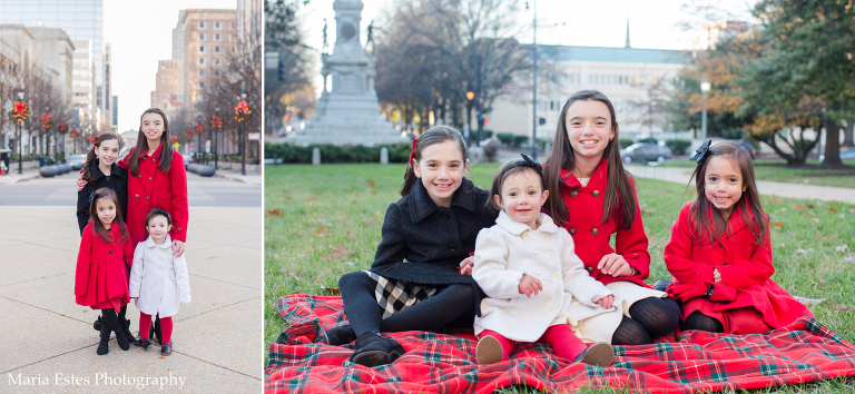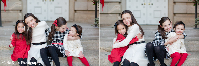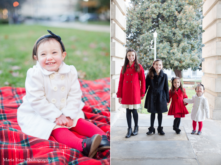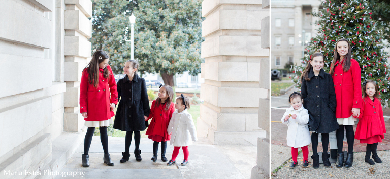 This is the fourth time I’ve gotten to photograph these sweet sisters, and I think this is the best year yet! When their mom asked if we could do a Christmas-themed session, I couldn’t wait. We’ve done summer sessions, and fall session, so a wintery Christmas session was the obvious next choice! The girls were all wearing some combination of red, black, and white with their dresses, tights, and coats. Their outfits fit perfectly with the white capitol building with its Christmas wreaths and garlands. I’m so glad we chose to shoot there! Though it didn’t snow on the day of our session, that’s probably for the best. The little ones probably would have a had a hard time if it had been that cold. All in all, it was a great day, and I can’t wait until next year!