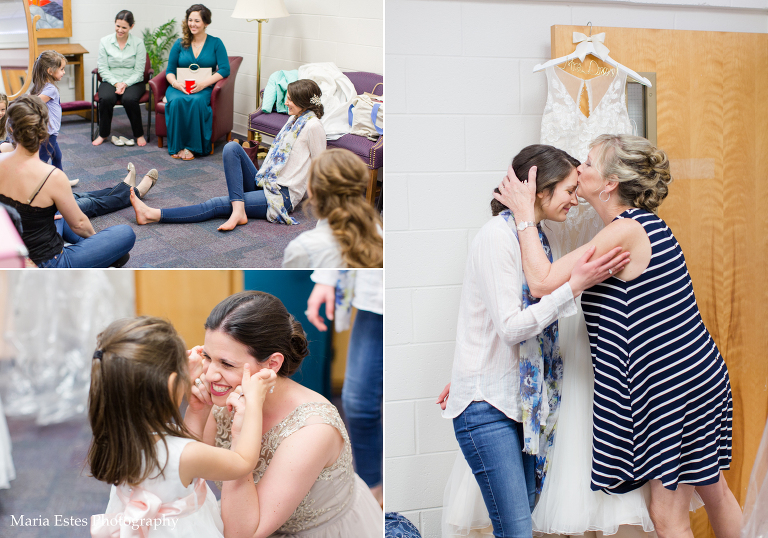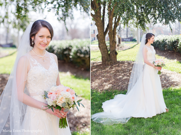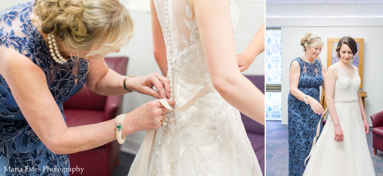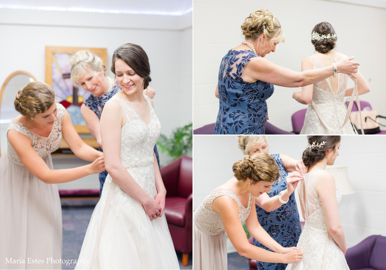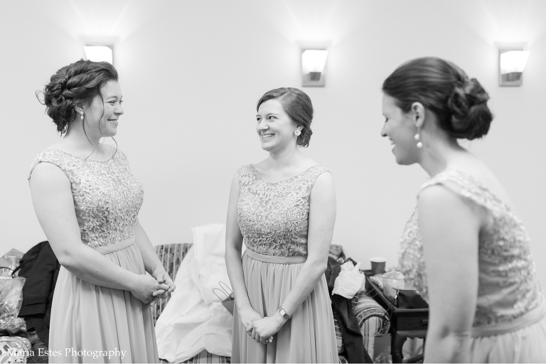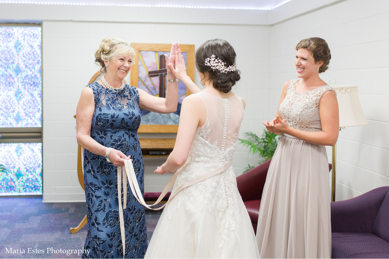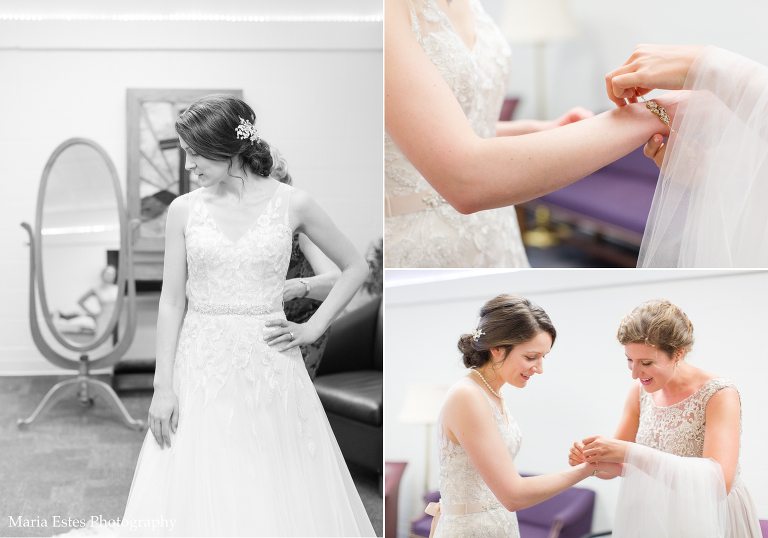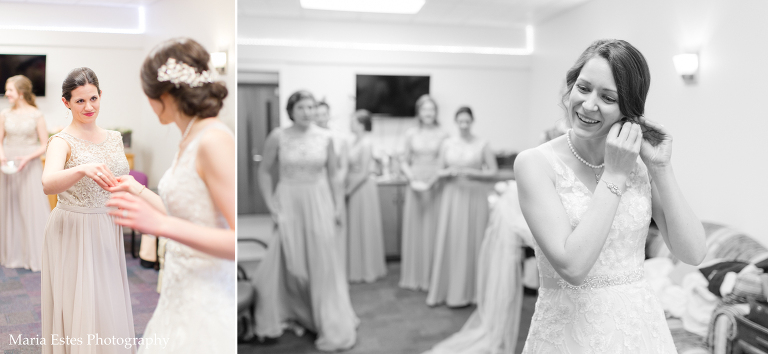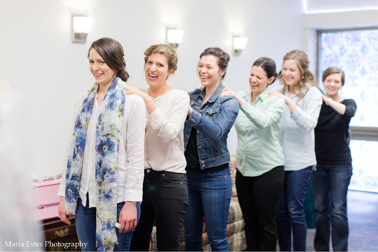 No matter how much you plan, there are always snags on a wedding day and this one was no different. But Jessica did a great job of rolling with the changes! First, the church where the wedding was held had been renovating the room where Jessica was going to get ready. Jessica called this week to confirm that it was done, but apparently “done” meant something different to the church than it did to her. There was space in the center of the room for people to get ready, but there was still construction equipment and stacks of chairs around the outside, and it just wasn’t going to work. So we picked another room, and it worked out fine. Then, when we went to do wedding party portraits after the ceremony we realized two groomsmen had already left for the reception. We did lose a little time, but it ended up working out fine to finish up wedding party portraits at the reception venue. Thanks for being flexible, Jessica!!