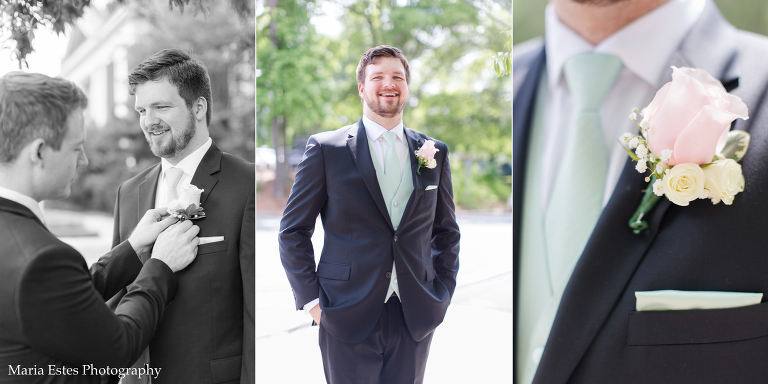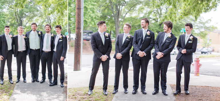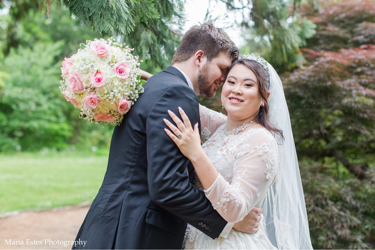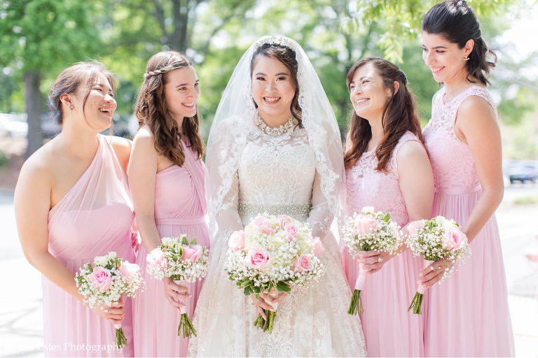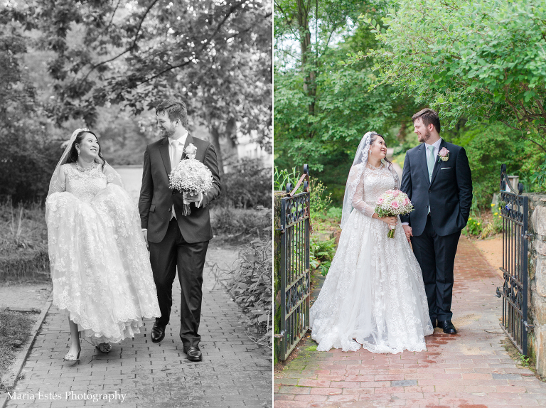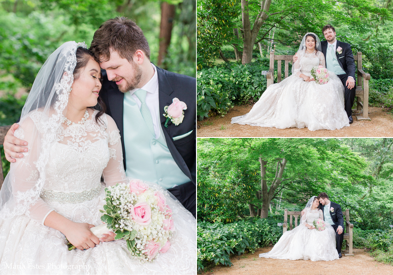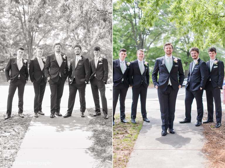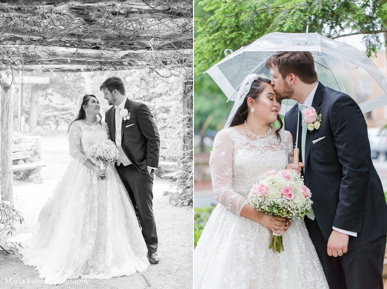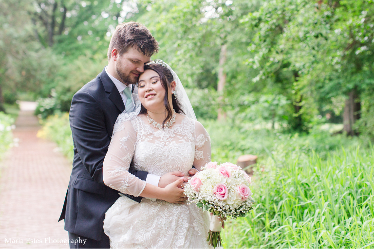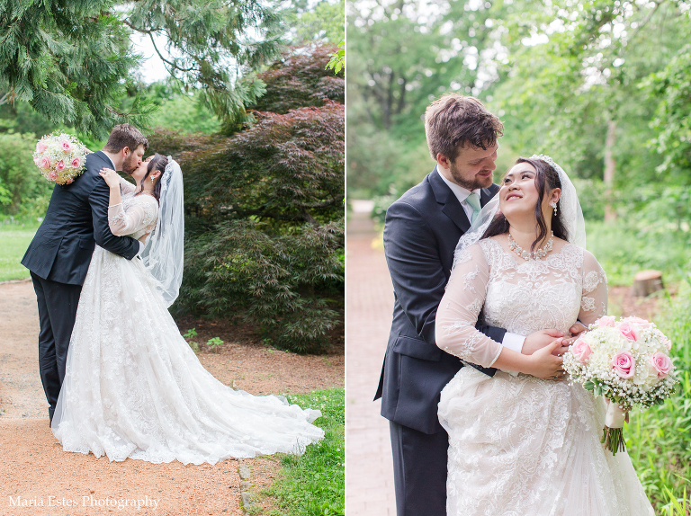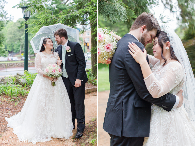 It was a hot day for May, and in the spring, hot days usually come with afternoon rain/storms. The clouds gave us momentary cover to do a few photos outside the church with the roses that we wouldn’t have been able to do otherwise, but as SOON as we got to the arboretum in Chapel Hill it started to rain. Thankfully it wasn’t raining too hard, so between the tree cover and the umbrella we were still able do photos outside, but I think we were all pretty hot and sticky afterwards. That’s okay, though, because all we had left to do after that was party! It really was a wonderful day, and I was so glad to be a part of it. Congratulations, Caleb and Donna!!