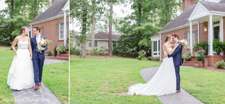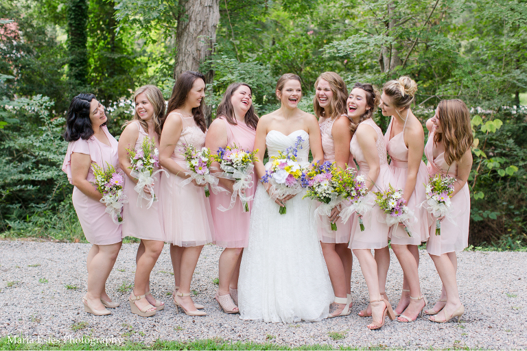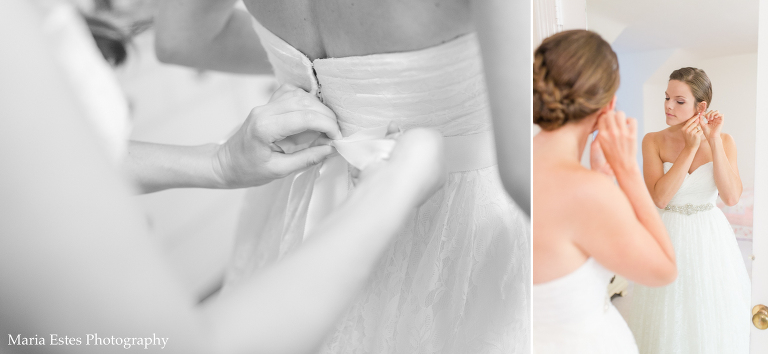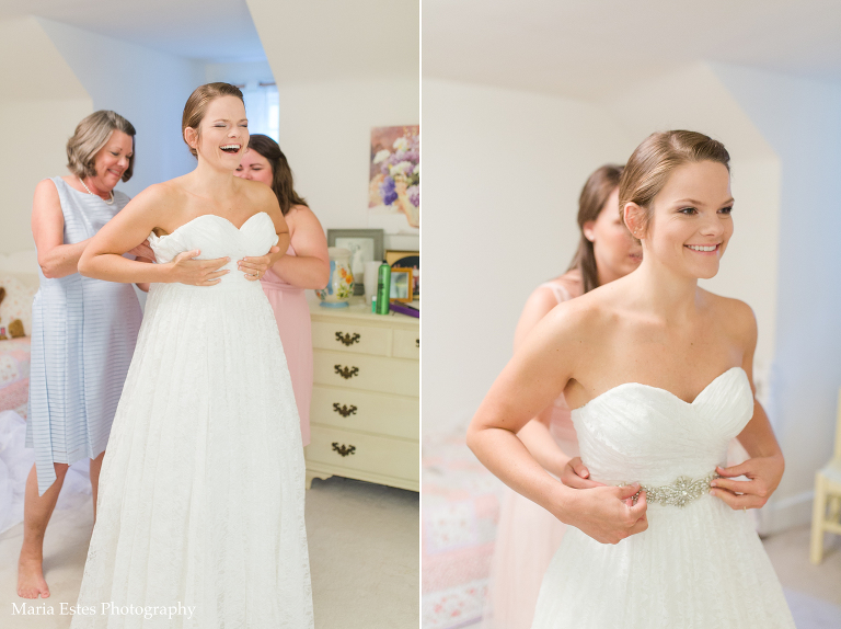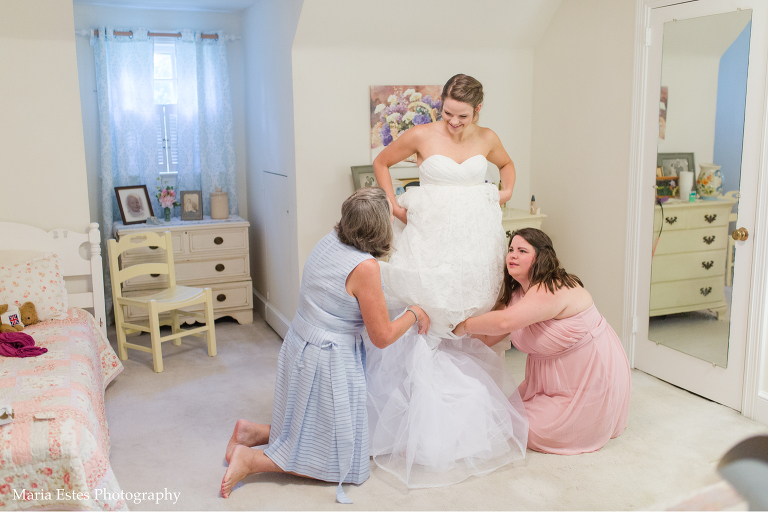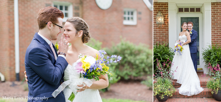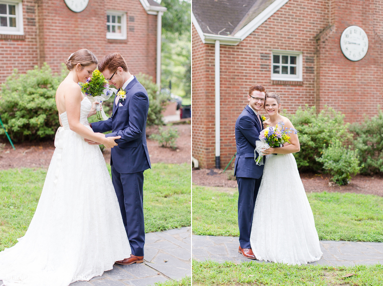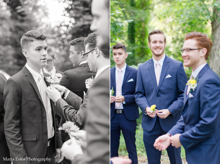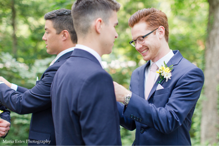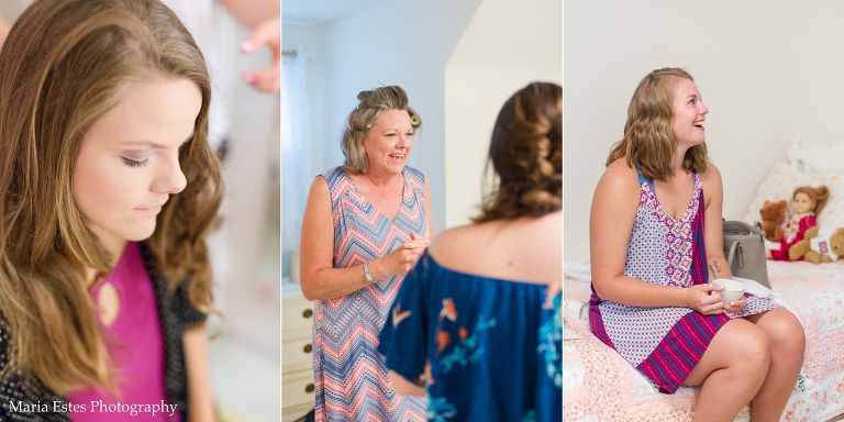 Hannah got ready at a friend’s house close to the church and country club. The house was beautiful, and had plenty of room for Hannah’s mom and bridesmaids. It also had a beautiful front yard that was perfect for the first look and wedding party portraits. The night before it looked like it might storm all day, but instead we had cool, cloudy morning, which was perfect!!
