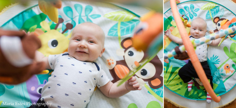 - He loves sitting up and seeing everything going on, and started trying to sit up from a reclined down position. He’s got some work to do on those ab muscles before he can really do it, though.
