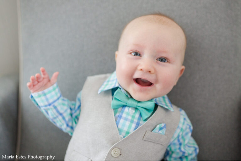 Time flies, when you’re having fun, right? I can’t believe we have a 5-month-old! This past month Aunt Delaney came to visit from Dallas and we went to the zoo in Alexandria! I think the grown ups enjoyed it more than Benjamin did this time, but I know he’ll love it when he’s a little older! For Easter, he wore a super cute outfit from grandma and grandpa Estes. It just kills me when he has tiny versions of grown up clothes! The rest of the month is a little bit of a blur…we’ve been so busy working on the next place we’re going to live! Benjamin came to so many big meetings and he did great. Uncle Evan came to visit the day he turned 5 months old and made him laugh so hard. We are so looking forward to Aunt Lauren, Uncle Matthew, and cousin Katelyn to come visit tomorrow. I have high hopes for the cuteness level of those photos next month =)