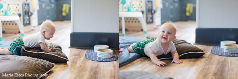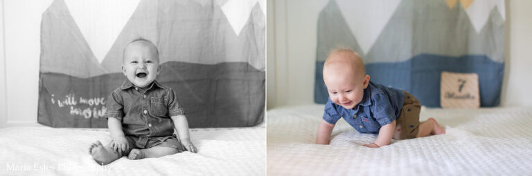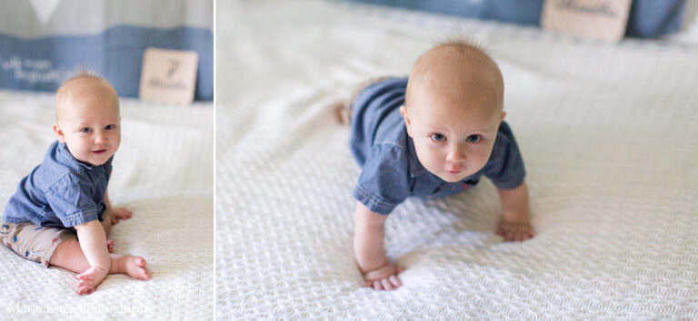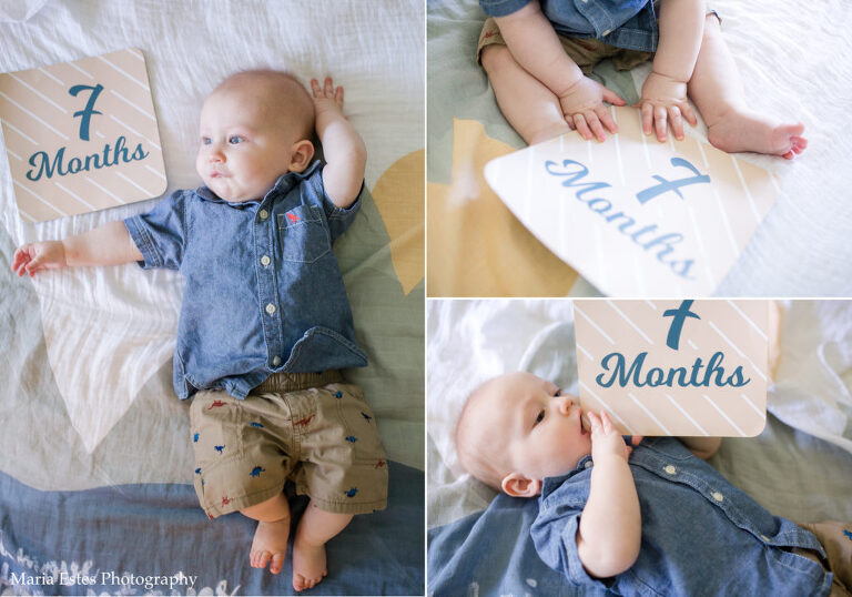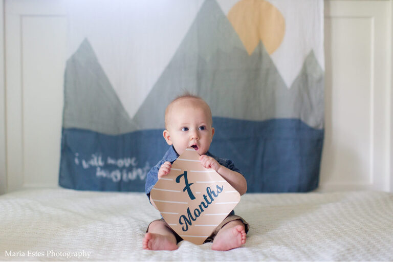 I know I just posted Benjamin’s 6-month photos a couple weeks ago, but I got a bit behind. He’s 7 months today!! This month he got to spend a lot of time with Uncle Philip, who was here for two whole weeks. One week he went to VBS every morning and then napped all day the Saturday after. We also went to a lake with some friends and he got to explore water and sand. He’s pretty apathetic about both so far 🙂 He’s trying more and more foods, is crawling/exploring like a champ, and is in the process of dropping a nap! We’re seeing his personality come out more and more, and it’s so much fun! But I tell you, it’s getting harder and harder to get photos of him. He just wants to move, move, move! And chew on the month number sign.