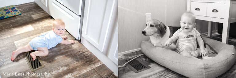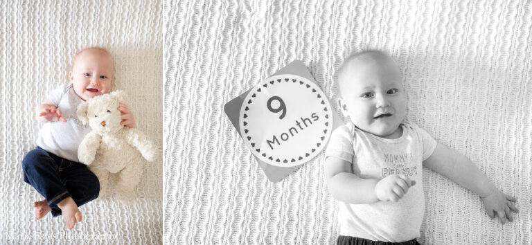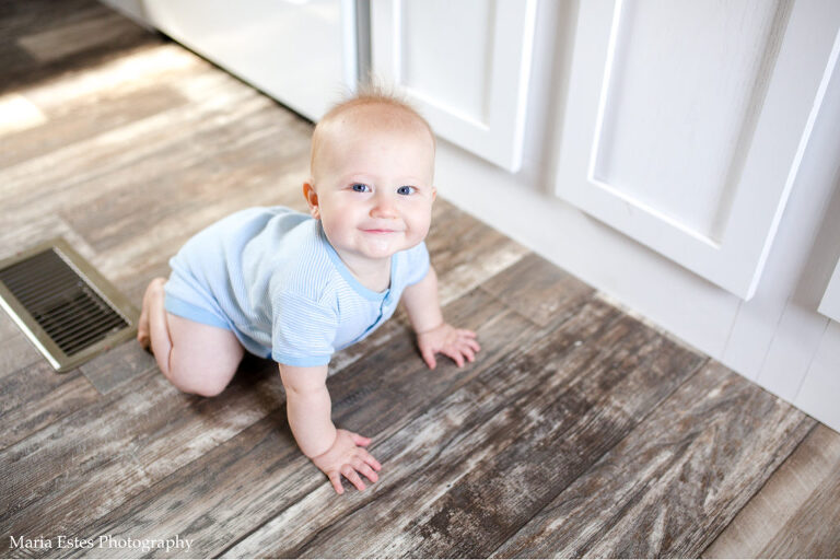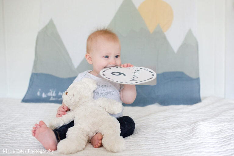 This month has been a lot of fun. Benjamin continues to learn new things everyday (it feels like it anyway), and explore the world around him. Crawling around the house seeing what there is to see is probably his favorite activity! He’s taken several steps while holding onto our hands, and one of my favorite videos this month is of him walking with Stephen. He’s holding a white bear in one hand and keeps dropping it. Every time he stops walking, stoops to pick up the bear, and then keeps going. It’s so cute! And it’s extra special because that bear was his great-grandmother’s at the end of her life. He never got to meet her, so it’s so special to me that he gets to love the same bear she loved! All that is to explain why I decided to include the bear in a few of the photos this month =)