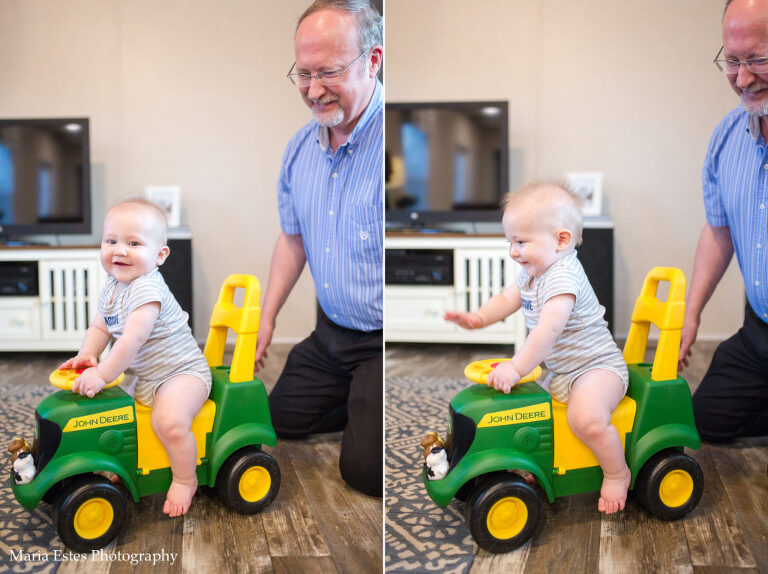 Grandma and Grandpa Estes and Uncle Philip came to visit over Labor Day weekend, and they brought him a little John Deere tractor. He loves it, and once he’s old enough to understand that it’s just like daddy’s he’ll love it even more. He can’t quite use it on his own yet, but he loves to ride and walk with it with our help. I can’t wait for him to learn how to do it on his own!