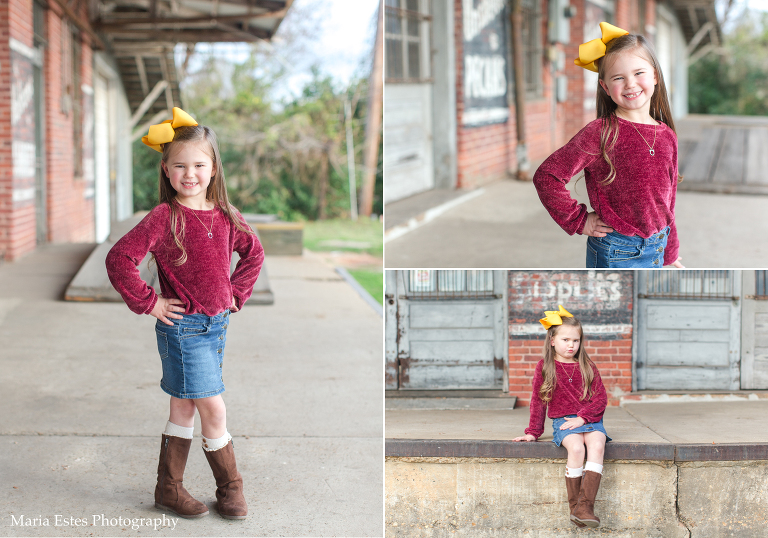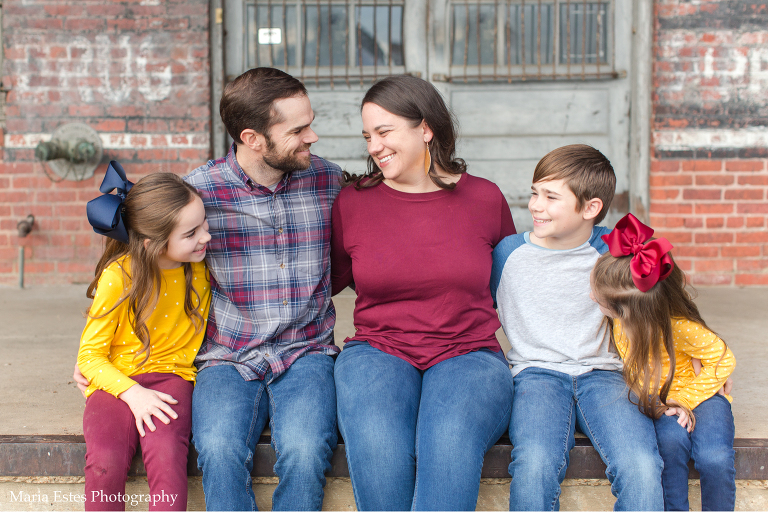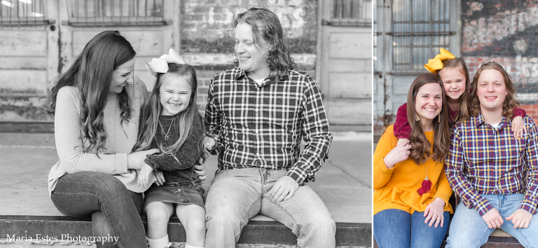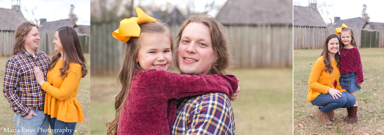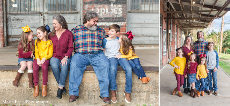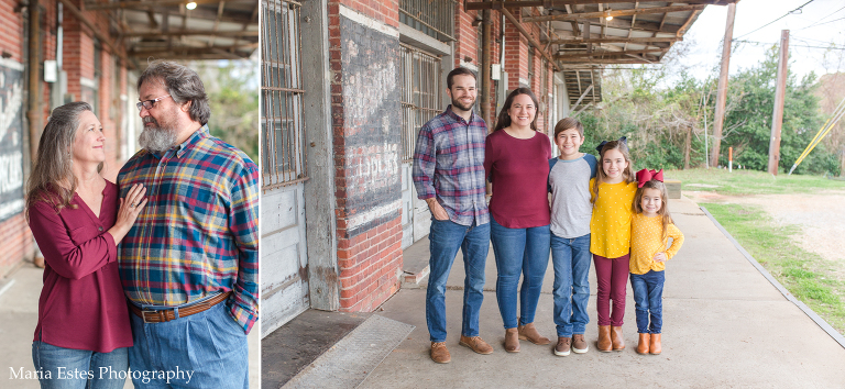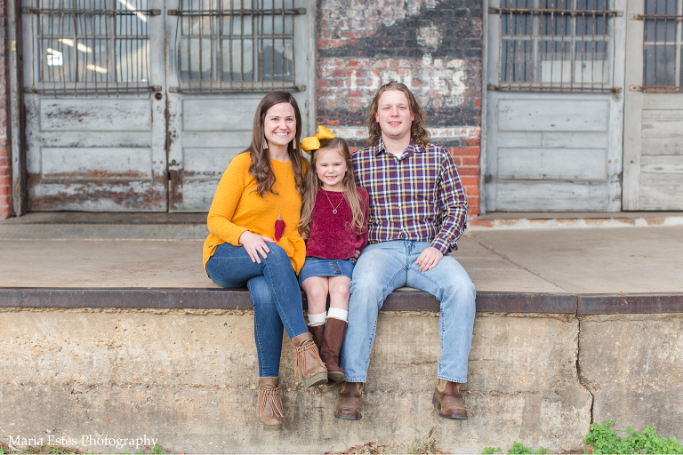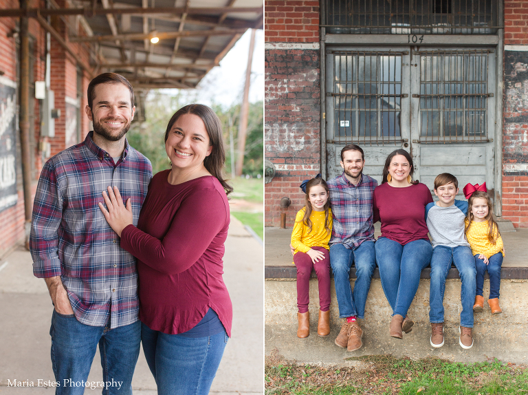 We picked a location in Natchotiches for the photos, starting at an old building that backs up to the fort. Since the Christmas lights are so awesome up there this time of year, we decided to make a day of it. Stephen, Benjamin, and I all drove up there for the photo session, and then the three of us went out to dinner and to look at the lights afterward. Benjamin was a little overwhelmed, but it was really fun. I’d never been downtown or to the riverfront area before, and we loved it! Anyways, I’m always nervous when I show up to a location to shoot that I’ve never been to before, but this spot was great, and the weather cooperated perfectly. Also, I think these folks deserve an award for coordinating outfits. They couldn’t have gone together better!