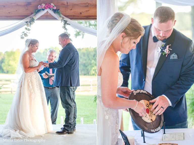 Because Amanda and Dustin put so much together themselves, they were busy ALLLL day. Their ceremony wasn’t until 7pm, and I know they used every bit of that time before they started getting ready. Amanda and Dustin decided not to see each other before the ceremony. A lot of my couples do that, BUT this time, with the ceremony so late, we didn’t have much light left after the ceremony so we had to be quick! The weather cooperated, though, and we got some great golden light right as the sun was hitting the horizon. It was perfect!