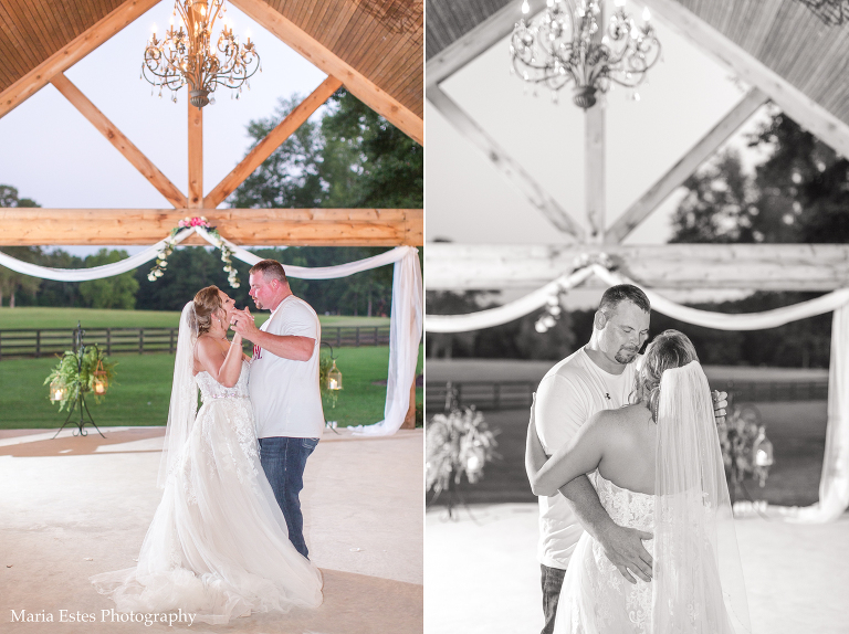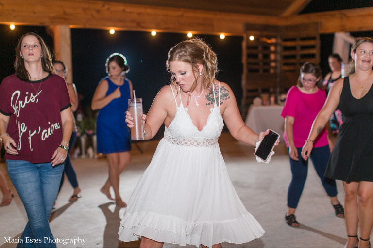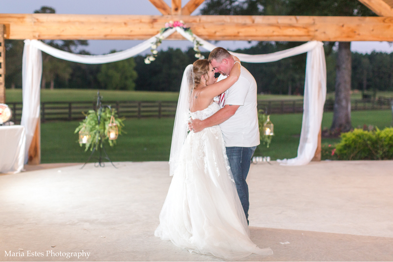 They got married at Dry Creek Venue, which was seriously the perfect place. Almost everything can be outside, which is nice given government guidelines about the pandemic, but the pavilion offers shade and fans. Don’t get me wrong…it was still HOT, but that’s what you get in Louisiana in July. Most people had changed out of their fancy clothes by mid-reception, including the bride and groom, and I don’t blame them one bit!