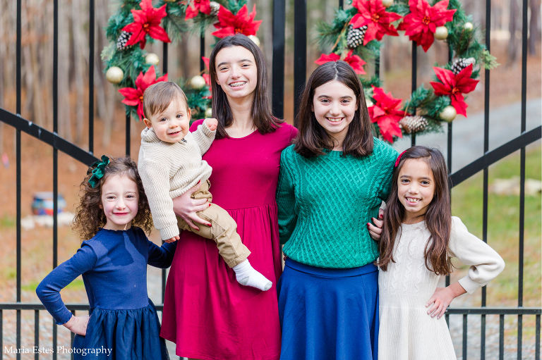 I have been photographing this beautiful family since 2015! Daughter number three, Lucia, could barely stand up the first time. (Don’t judge the photos in that post….my photography has improved A LOT in 6 years LOL). I’ve watched the oldest three girls grow, and I remember when Paloma was born. This isn’t even the first Christmas session I’ve gotten to do with them!