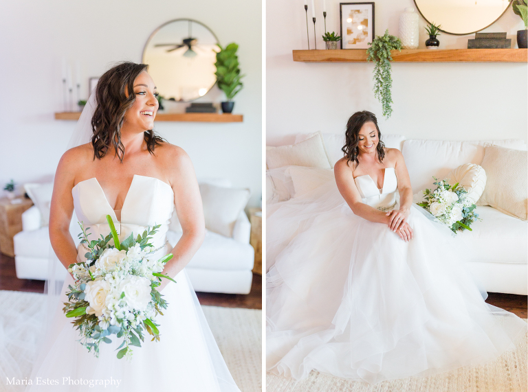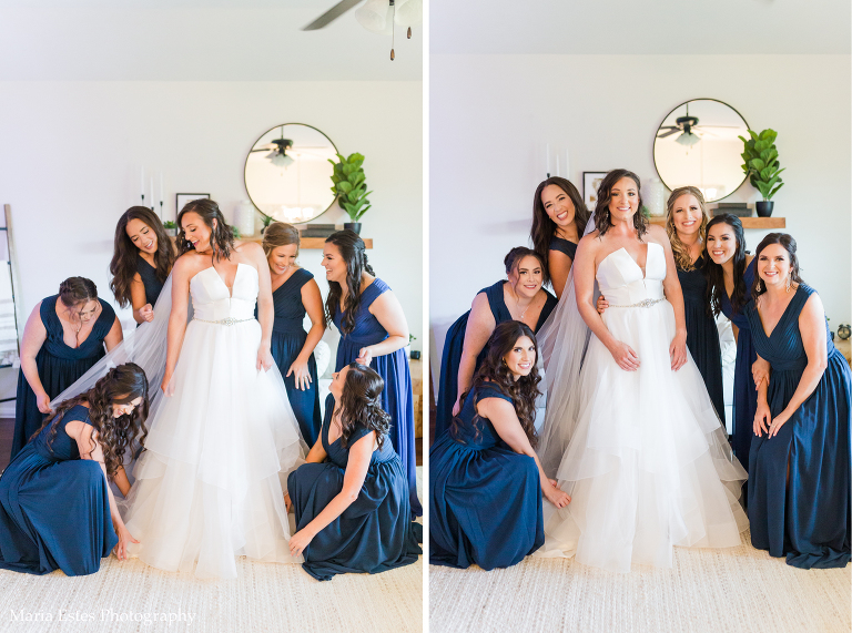 I began photographing with the girls at one of the bridesmaids houses in Lake Charles. Y’all. Her house was gorgeous!! It seriously looked like a professional had decorated it. I was obsessed with the white couch in the living room with the wooden shelf above it. The greenery and other decor was perfect, and I used it as the backdrop for almost all the photos we took in the house. It didn’t hurt that it was next to the most perfect windows. It’s all about the light, and that’s true inside as well as outside.