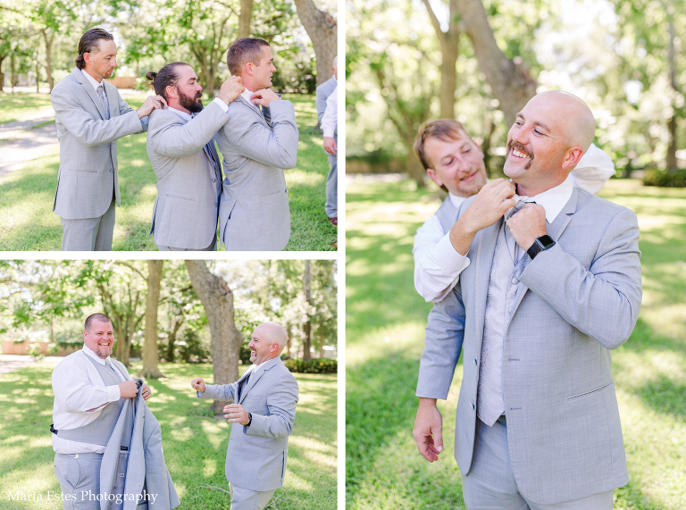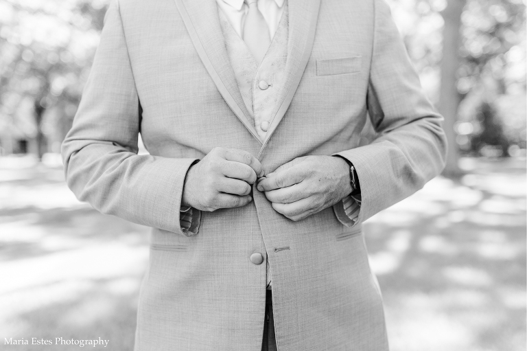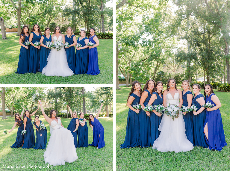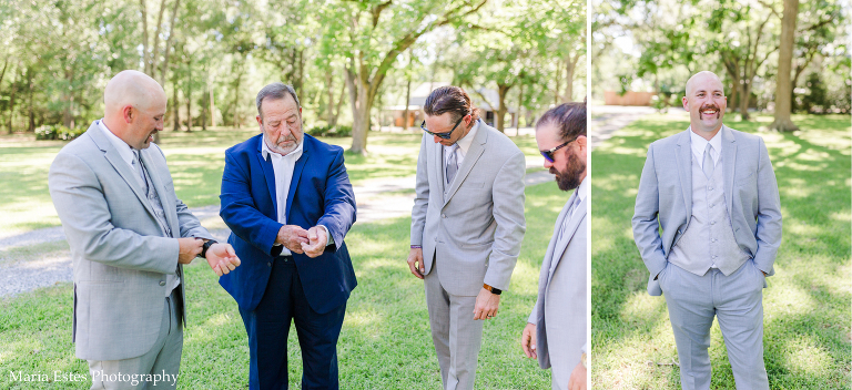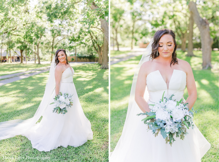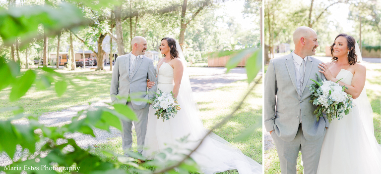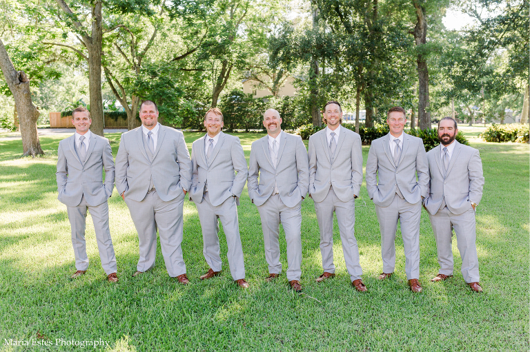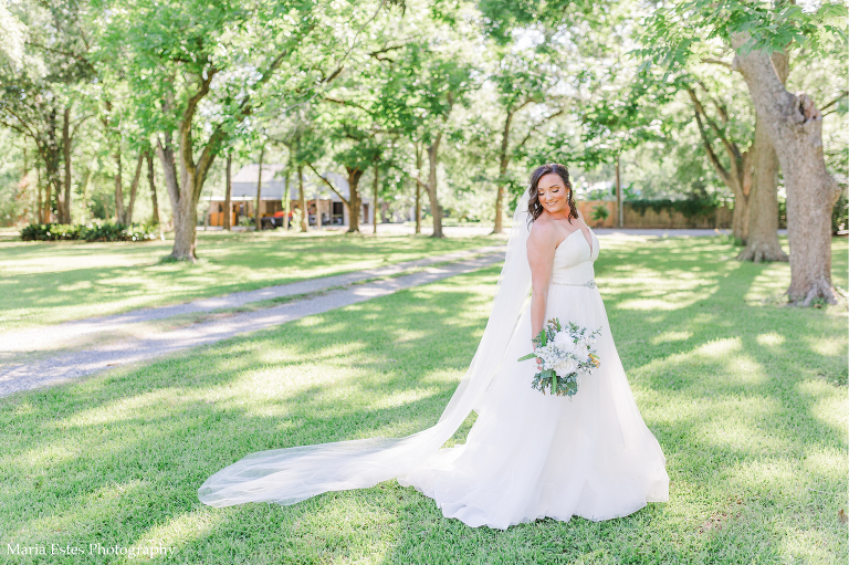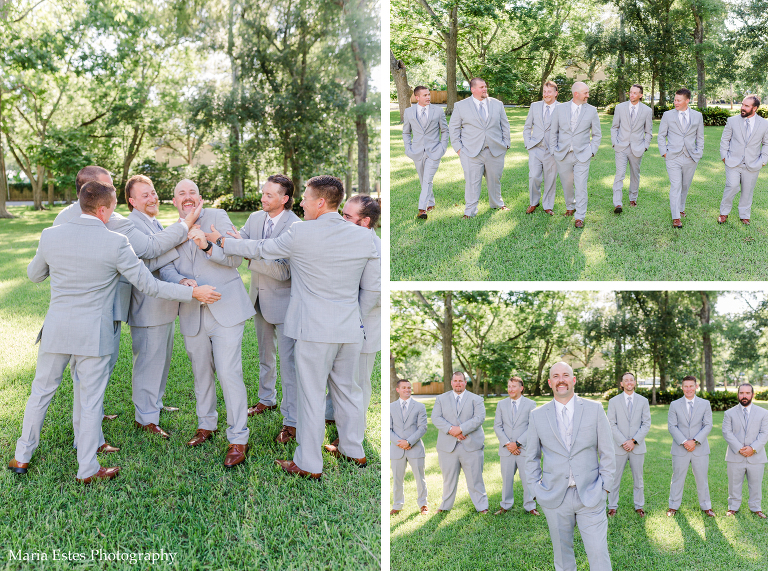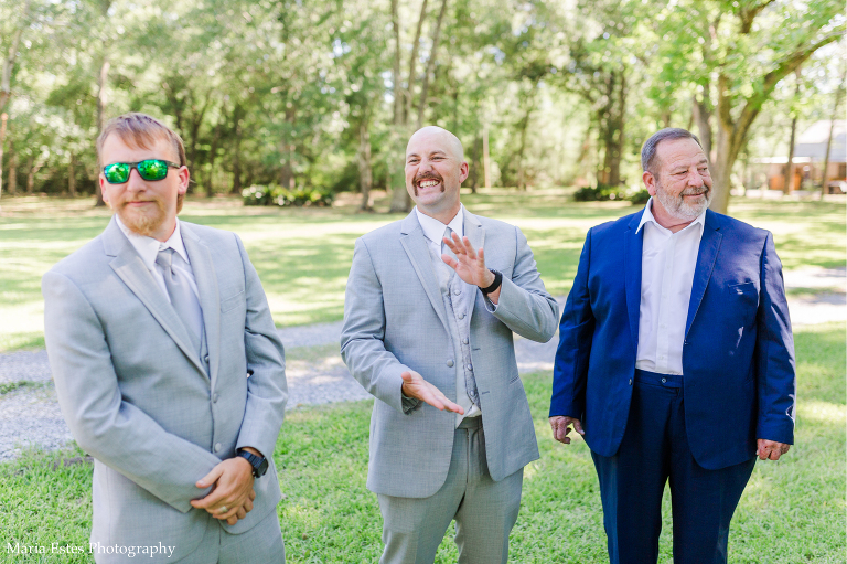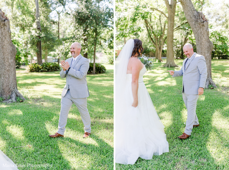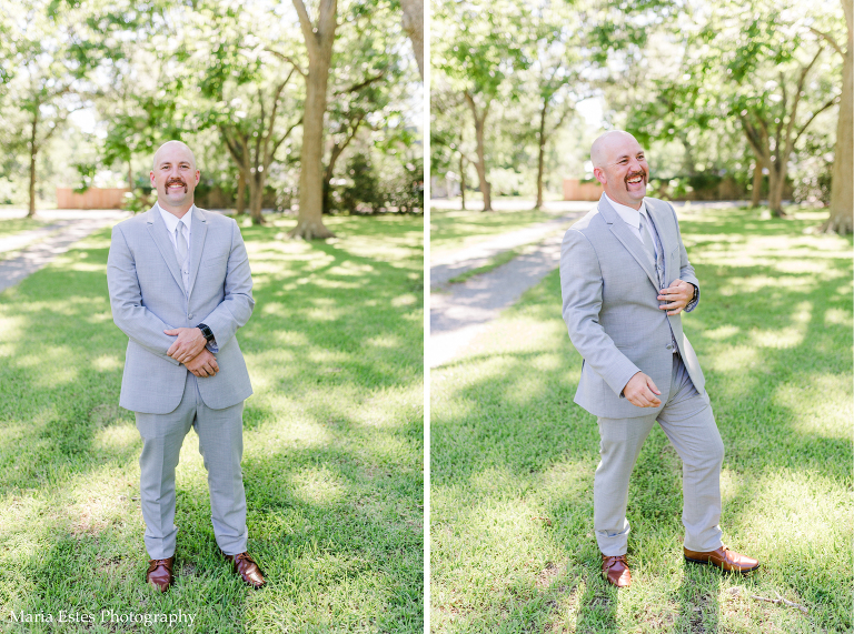 Next we went to a property near the church to do portraits. I’m so glad Lisa thought about where to take pictures, because I wasn’t familiar with the church and there wasn’t much space there. The property owners were gracious enough to let us use their land, and it was SO pretty! I loved all the tall trees and lush greens. It was the perfect place for Lisa and AJ’s first look, couple portraits, wedding party portraits!