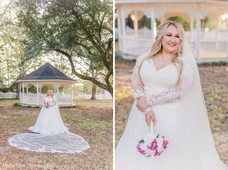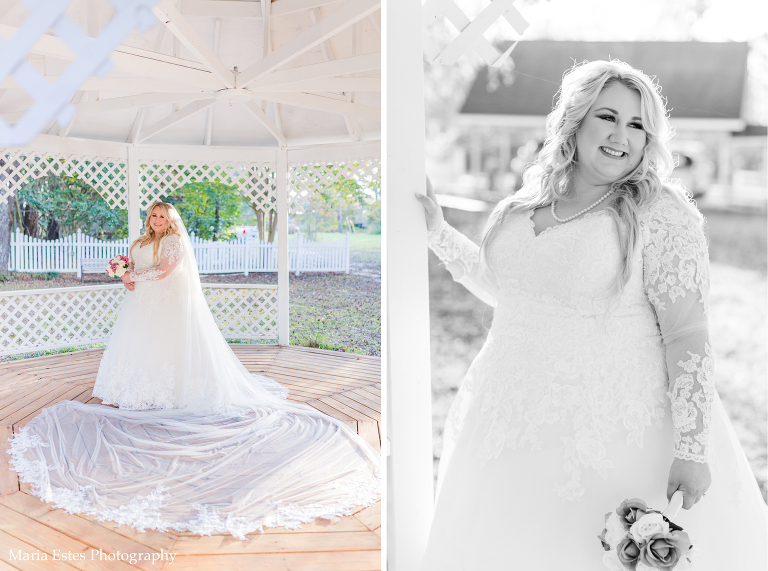 Ashlyn is from Deville, and wanted to do her bridals at each of her grandparents’ houses. How sweet and special is that?? The first house we went to has a gorgeous white gazebo in the back, and Ashlyn and her family spent a lot of time cleaning it up for pictures. There were also beautiful old trees with Spanish moss and a gorgeous white split rail fence. Ashlyn seriously could not have chosen a more beautiful spot! She was even able to take a picture with her grandmother before we started, which was really special.