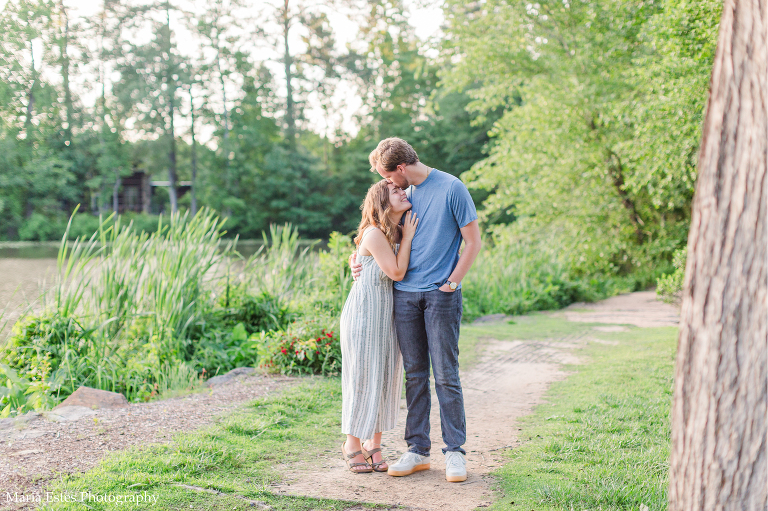 It’s wedding week for these two! I’m so behind on blogging that I never posted their full engagement session back in May, so here it is! We spent an hour and a half walking around Historic Yates Mill County Park south of Raleigh, and while it felt hot at the time, it was not nearly as hot as it has been lately! Aubrey’s dress was so lovely and fit the location perfectly! Though they were both nervous, I think it’s safe to say they did a great job. This is why I highly recommend engagement sessions! You have a chance to work through some of those photo nerves before your wedding day.