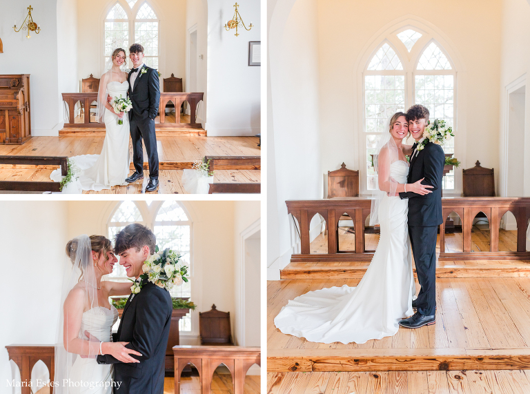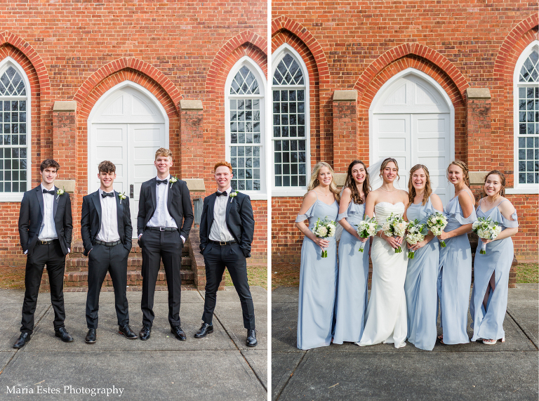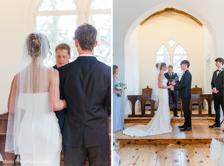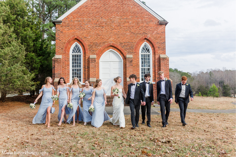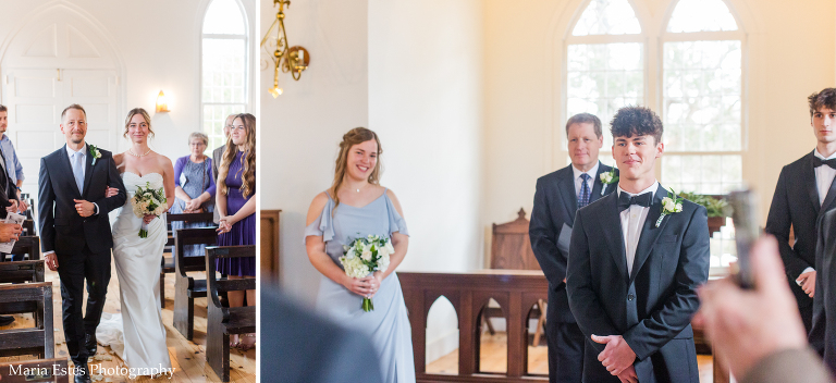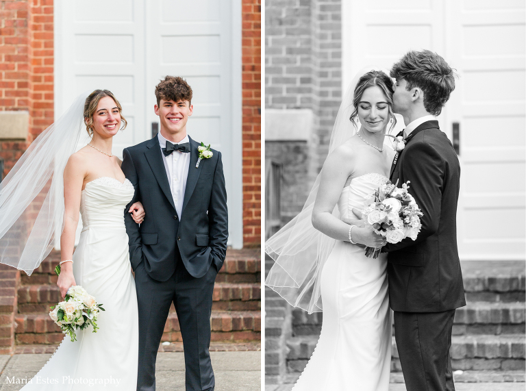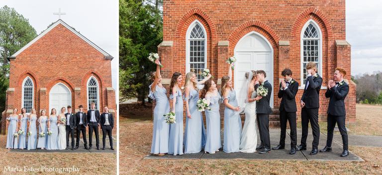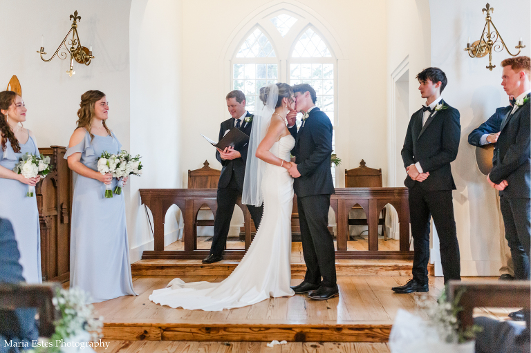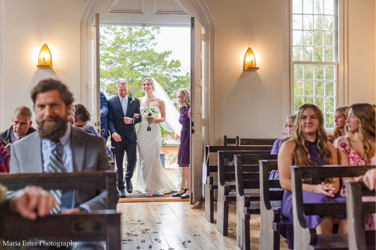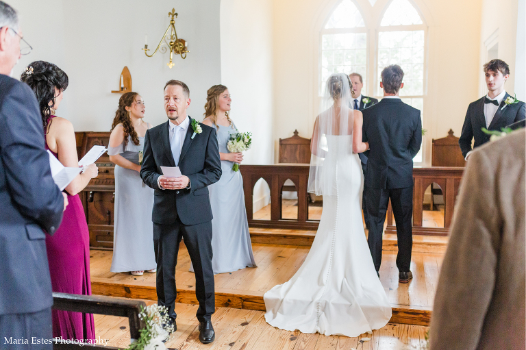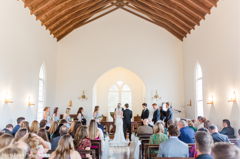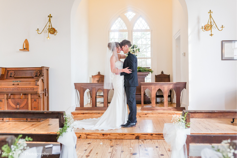 Jenna and Cort were married at St. Mary’s Chapel near Hillsborough. It’s a gorgeous little country church with bright walls and dark wood pews. The simple white flowers and fabric decorations were the perfect touch! Jenna got dressed in one of the school buildings on-site, and we took pre-ceremony pictures out on a hill overlooking some farmland. It was so windy out there, but totally worth it! When it came time for the ceremony, the excitement was tangible. And the moment those back doors open is always so special! It was sweet seeing Jenna’s dad lead a hymn during the ceremony and to see all the little smiles and looks Jenna and Cort shared.